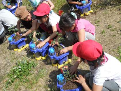 2年 ミニトマトの苗を植えたよ! 2014/5/13