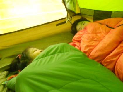 みんな一生懸命テントを張り,寝袋はとても楽しそうに入って寝たふりをしていました。