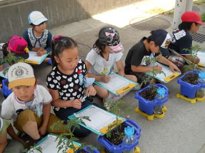 手で触ったり,近づいて見てみると,茎に毛が生えていることに気づいたり…。気づきがありました。これから,観察して見つけたことや気づいたことが,誰が読んでもわかるように,書くポイントも学習していきます♪