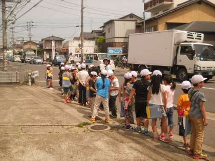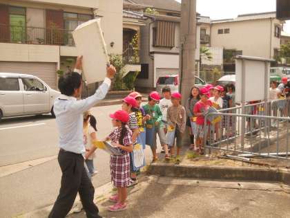 好天に恵まれた中,校区探検にでかけました。「今日はどんな所があるかな?」「ぼくんちのあるあたりやし知ってる。」などワイワイいいながら探険しました。3回目になると見る視点もだいぶ上達してきていました。