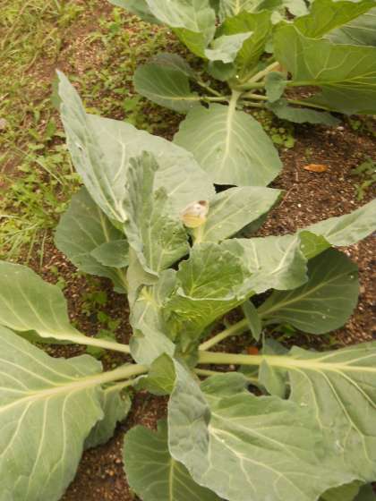雨上がりに中庭のキャベツ畑に行ってみると,なんとモンシロチョウが卵を産みに来ていました。子どもたちと卵を産んでいる様子を静かに見守りました。