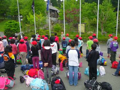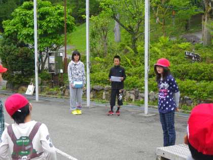 児童代表の言葉では、みんなで楽しみにしてきた「山の家」。協力し合って、楽しい思い出をたくさんつくることを約束しました。