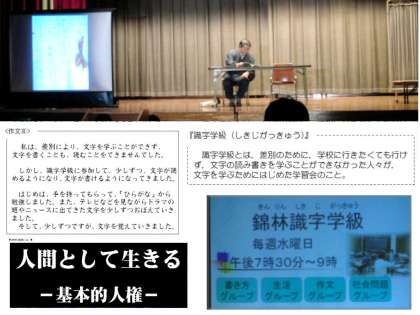 <人間として生きる−基本的人権−>と題して,<識字学級>で文字の読み書きを獲得した方の作文を教材に授業をすすめました。