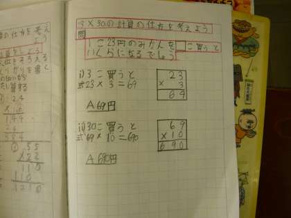 今日は,20倍や30倍の計算の仕方を学習しました。