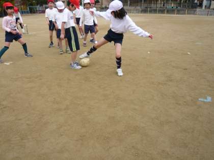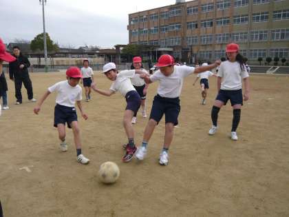 みんなボールを楽しそうにおいかけながら,得点を決めようとがんばっています。