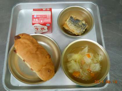 6月10日の献立は,「チーズコッペパン・牛乳・さわらの香草あげ・野菜のスープ煮」でした。