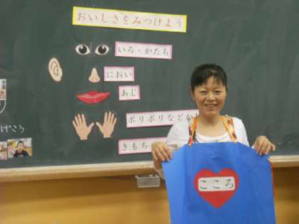 目や鼻や耳,手,口,そして心を使って食べようということを学びました。