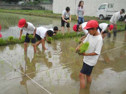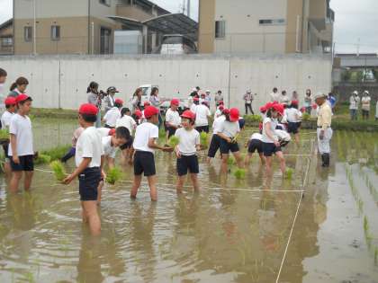 また秋頃には稲刈りをさせていただくことになっていますが,子どもたちはもうすでに稲刈りを楽しみにしています。みんなが植えた苗だからきっと立派な稲が育つだろう。