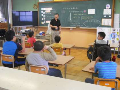 避難指示の放送がなると,つばさ学級の子ども達はほとんど話すこともなくさっと廊下に出ていました。