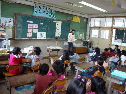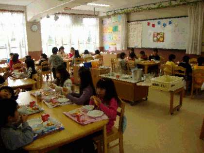 2月9日(火)に1組,10日(水)には2組の食の学習とランチルーム給食がありました。食の学習では栄養教諭の平山先生に来ていただいて,噛むことの大切さについて学習しました。やわらかいものばかり食べていると噛む力が弱くなること,逆にしっかり噛んでいると噛む力が強くなって,あごが丈夫になる,歯並びがよくなる,歯が強くなる,頭がすっきりする,食べすぎを防ぐ,食べ物の味がよくわかるなどの効果があることを学習しました。一口ごとに30回噛むととても効果があるそうですが,はじめはなかなか難しいので最低10回は噛むとよいと教えてもらいました。その後のランチルーム給食では意識してしっかり噛むように気をつけている子が何人もいました。