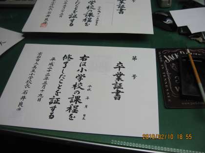 おはようございます!! 昨日は雨の寒い一日でした。今朝も小雨が降り,体の芯から冷えてくる,まさに底冷えを感じます。卒業式の練習が始まっていますが,校長室でも卒業に向けての作業が始まりました。卒業証書の作成です。文字の確認や字体など,神経を集中して,取り組みます。