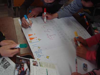 各グループで資料等を使って調べ学習をしました。そして,美しい川を守るためのメッセージを発信しようという目的で,画用紙にまとめています。子どもたちが大人になっても,美しい川を守り続けてほしいと思います。