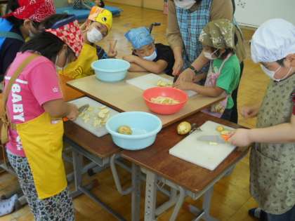 今日は,つばさ畑でとれたじゃがいもの調理実習!