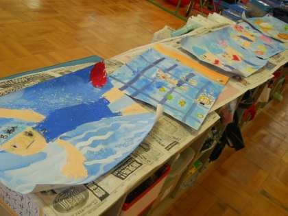 水泳学習の後は,楽しかった水泳のことを絵にあらわしました。