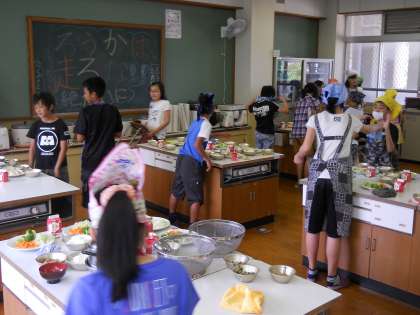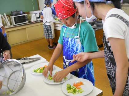 先日の調理実習の様子です。ゆで野菜のサラダとフレンチソースを作りました。下準備から後片付けまで,手際よい!!