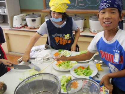 先日の調理実習の様子です。花背山の家での経験が生きています。とにかく子どもたちは動く,動く!!どのグループも素晴らしい活動ぶりでした。