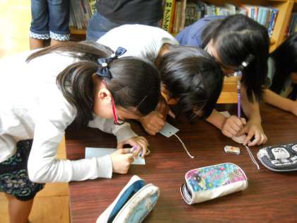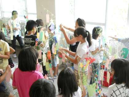 7月1日に1・2・3年生,7月4日に4・5・6年生を対象にした図書ボランティアの方々による七夕イベントがありました。
