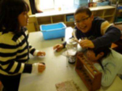 水蒸気に冷たいものを近づけると,水滴がつく様子に驚いていました。
