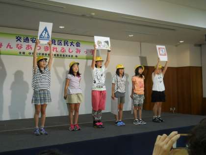 7月6日(日)伏見区役所にて交通安全伏見区民大会があり,5年生児童6名が出席しました。開会式で6人そろって「開会宣言」し,会の締めくくりには「交通安全の誓い」を高らかに宣言しました。笑顔で元気に発表することができ,美豆小学校の代表として立派に役目を果たしてきました。