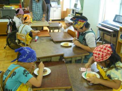 みんなでおめでとうの気持ちを込めて,調理実習をしたり,だしものやみんなあそびをしたりしました。