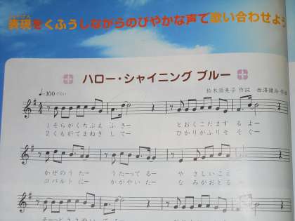 「ハロー・シャイニングブルー」の二部合唱に取り組んでいます。全体練習の様子です。この後に,グループごとに歌います。