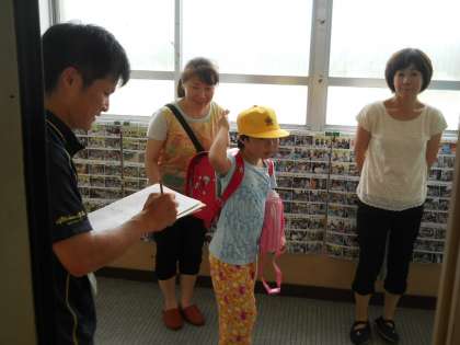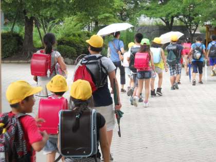 美豆小学校では、震度5弱以上の地震が発生した場合は、通常の下校や集団下校を行わず、あらかじめ登録いただいた保護者の方に「引き渡し」を行います。