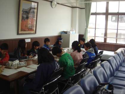 第2ピリオドの初めには,広場にて代表者会議が行われました。よりよい街づくりを目指して,各企業の代表者よりそれぞれの仕事の様子,改善点などが報告され,話し合います。なかなか意見が出ず,進行役の区長は大変だったでしょうが,自分の意見もいれながら,うまく話を振り,各代表者から意見を引き出していました。