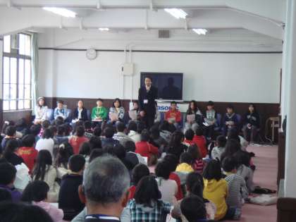 一日の最後は,広場での全体ミーティングです。各ブースの代表者より最終損益,活動状況の報告が行われました。一部赤字のところもありましたが,どのブースもよく頑張ったと思います。同時に,働くことの大変さ,有難さを痛感してくれたことと思います。今日の学習で得たことを,これからの生活にぜひ生かしてほしいと思います。そして,お家の方への感謝の気持ちを忘れないでいてほしいです。