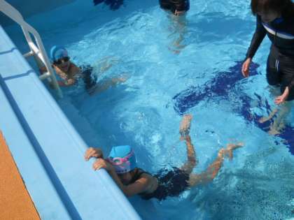 けのびやバタ足の練習をしてから,それぞれの課題について個別学習をしました。
