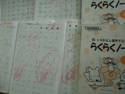 「らくらくノート」で漢字10行練習や新出漢字の学習に取り組んでいます。花丸・Very Goodがもらえるように,いつも頑張っています。
