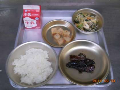 9月3日の献立は、「ごはん・牛乳・にしんの煮つけ・かみなりこんにゃく・もやしの煮びたし」でした。