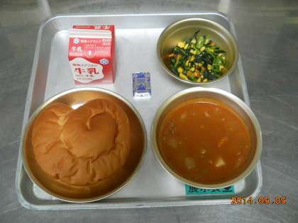 9月9日の献立は,「バターうずまきパン・牛乳・トマトシチュー・小松菜のソテー・チーズ」でした。