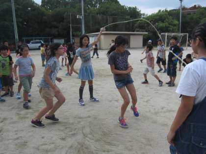 最初は,苦手だった子も失敗を繰り返しながら跳ぶタイミングをつかみはじめ,今では楽しそうに跳ぶ姿がたくさん見えるようになりました。まずは,学級の最高記録をどんどん更新して大なわ大会に自信をもって挑んでいきます。