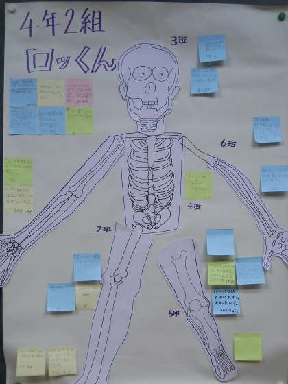 理科の「わたしたちの体と運動」の学習で,体の中の骨を班ごとに分かれて,調べ学習を行いました。