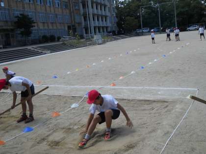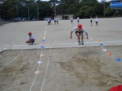 自分に合った助走距離を見つけながら,自分の記録に挑戦しました。
