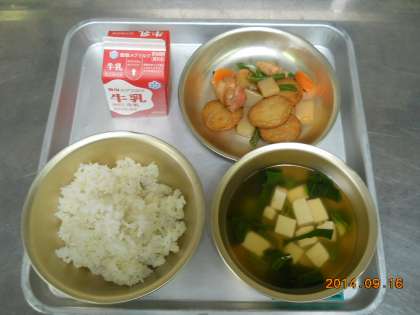 9月16日の献立は,「麦ごはん・牛乳・平天とこんにゃくの煮つけ・すまし汁」でした。