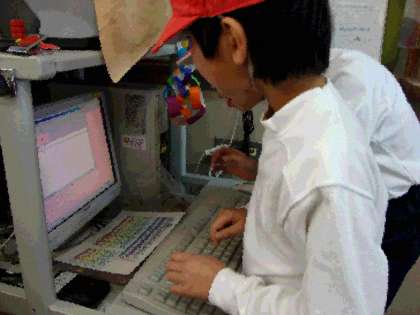 教室のパソコンは朝休みの間に日直が起動してくれます。パスワードを入れたあと,学校の掲示板を開くところまでを日直が行います。学校の掲示板には校長先生が毎朝メッセージを書き込んでくださっています。季節ごとの話題などの後に毎回,学校や美豆地域に関するクイズを出してくださいます。子どもたちは,この問題をとても楽しみにしています。2年生の子ども達もパソコンに慣れてきて,ローマ字表とにらめっこしながらですが,答えを自分達で掲示板に書き込めるようになってきました。