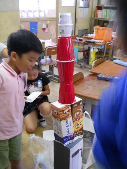 みんな,必死で取り組んでいました。壊れても,責めることなく,何度もやり直す班・壊れた時にみんなで笑い合う班…。素敵な時間になりました。
