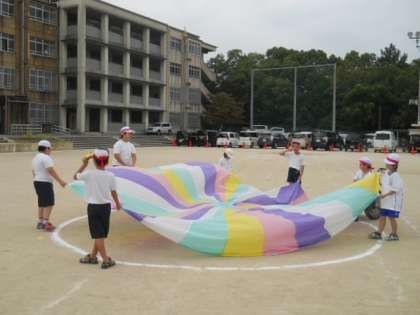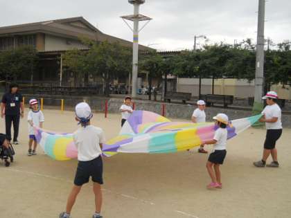今日は風が強くて,バルーンを揺らしたり上にあげたりすることがとても難しかったのですが,みんなは頑張って2回も通し練習をすることができました。