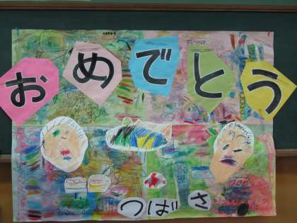先週金曜日には,つばさ学級で「ありがとう,さようなら」の会をしました。明日は全校で「6年生を送る会」。会場をかざるタペストリーも完成。明日は3年生二人で精いっぱいありがとうの気持ちを表します。6年生のみなさん!おめでとう!送る会を楽しんでください。