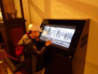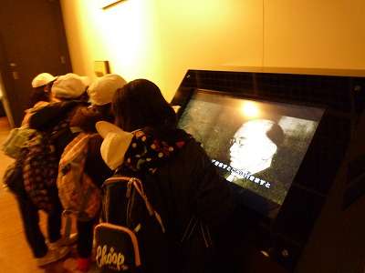 タッチパネルで映像を見たり,クイズに答えたりする子もいました。