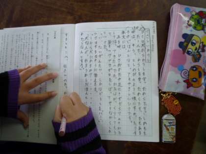 『モチモチの木』の登場人物紹介を仕上げ,斉藤隆介さんの作品を読み,登場人物紹介カードを作っています。みんな学習したことを生かして,すらすらと作り上げていました。