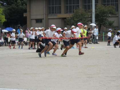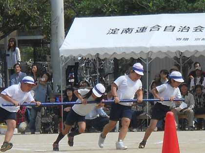 団体競技「美豆小ハリケーン 〜つなげようなかまのわ〜」では,各色チームワークを発揮して取り組みました。