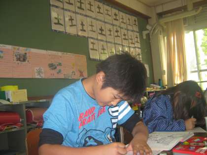 運動会が終わってひと段落。集中して漢字の学習をしています。
