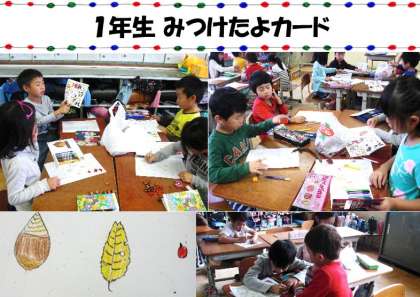 秋みつけで集めてきたどんぐりや落ち葉を「みつけたよカード」に書きました。