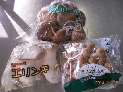 “きのこスパゲティ”には,しめじ・エリンギ・生しいたけの3種類のきのこを使用しました。きのこの香りと歯ごたえが楽しめる献立でした。