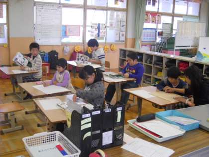 つばさ学級の4,5年生が,はじめて木版画に取り組みました。
