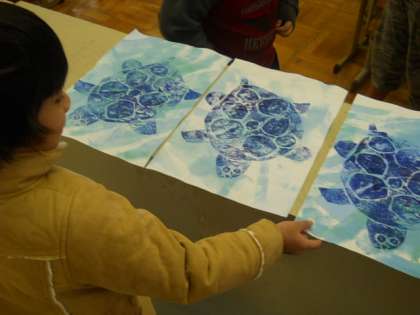 今回は大好きなカメをテーマに作ったので,仕上がった作品を見て,とても嬉しそうにしていました。
