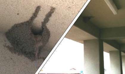 学校内にツバメの巣があります。