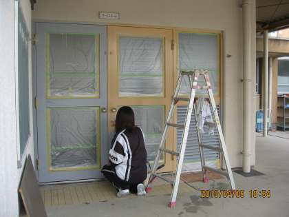 今日は6年生がきて,明日の入学式の準備に力を出してくれました。教室の飾り付けや,体育館など校舎の掃除ができました。給食室入口のペンキ塗りもしてもらっています。